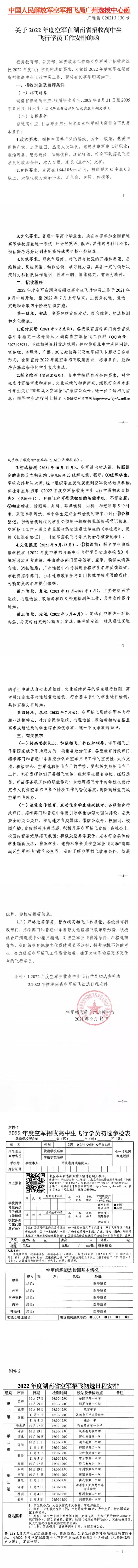 湖南公布2022年度空军招收高中飞行学员工作安排: