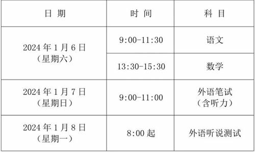 上海2024年1月高中学业水平合格性考试安排(语数外科目) —掌上高考—中国教育在线