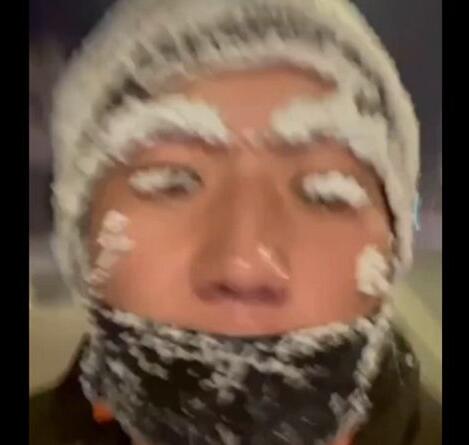 哈尔滨男子晨跑眉毛挂霜变鳌拜 奔跑的雪人先生
