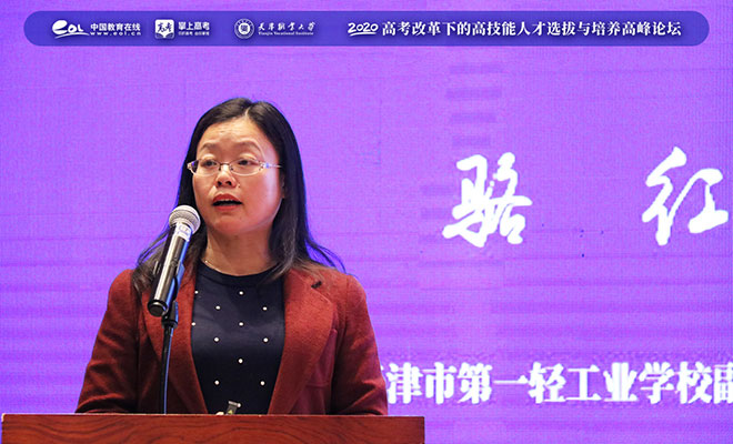 10月29日,由中国教育在线联合天津职业大学共同举办的“高考改革下的人才选拔与人才培养探索高峰论坛”在天津召开。来自山东、河北等地的400余名高职院校招生负责人,高中、中职校长及教育界专家学者参加了本次活动。在论坛上,天津市第一轻工业学校副校长骆红做了《中高职贯通教育培养模式的实践与思考》的分享。骆红以中高职贯通培养模式的社会需求为切入点,介绍了这一培养模式的实施背景和各校的应用情况,并就协同育人的实践探索进行了分享。据骆红介绍,2019年《国家职业教育改革实施方案》发布以来,为中等职业学校学生的升学发展