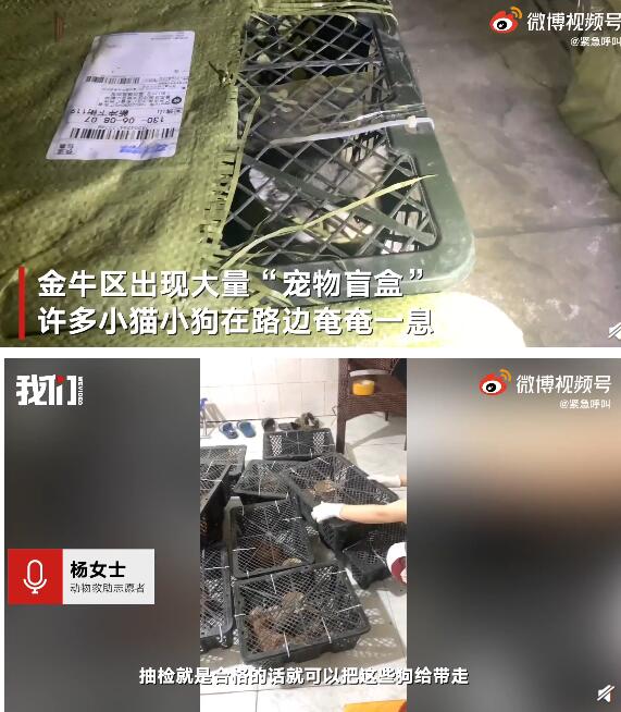 5月3日,四川成都。有网友爆料成都市区出现“宠物盲盒”,许多小猫小狗在盒子里奄奄一息。“宠物盲盒”购买前是不知道里面有什么的,属开箱有惊喜的“娱乐项目”。当地志愿者和救助站,在深夜救助这些小猫小狗。4日,成都市农业农村局执法总队副总队长李先生表示,已接到举报,相关证据正在搜集。目前派出所和相关执法部门均回应,事件正在调查处理中。央视评论宠物盲盒是对人性的背离:用盲盒装动物,将一些人的快乐建立在动物痛苦甚至失去生命的基础上,是对人性的背