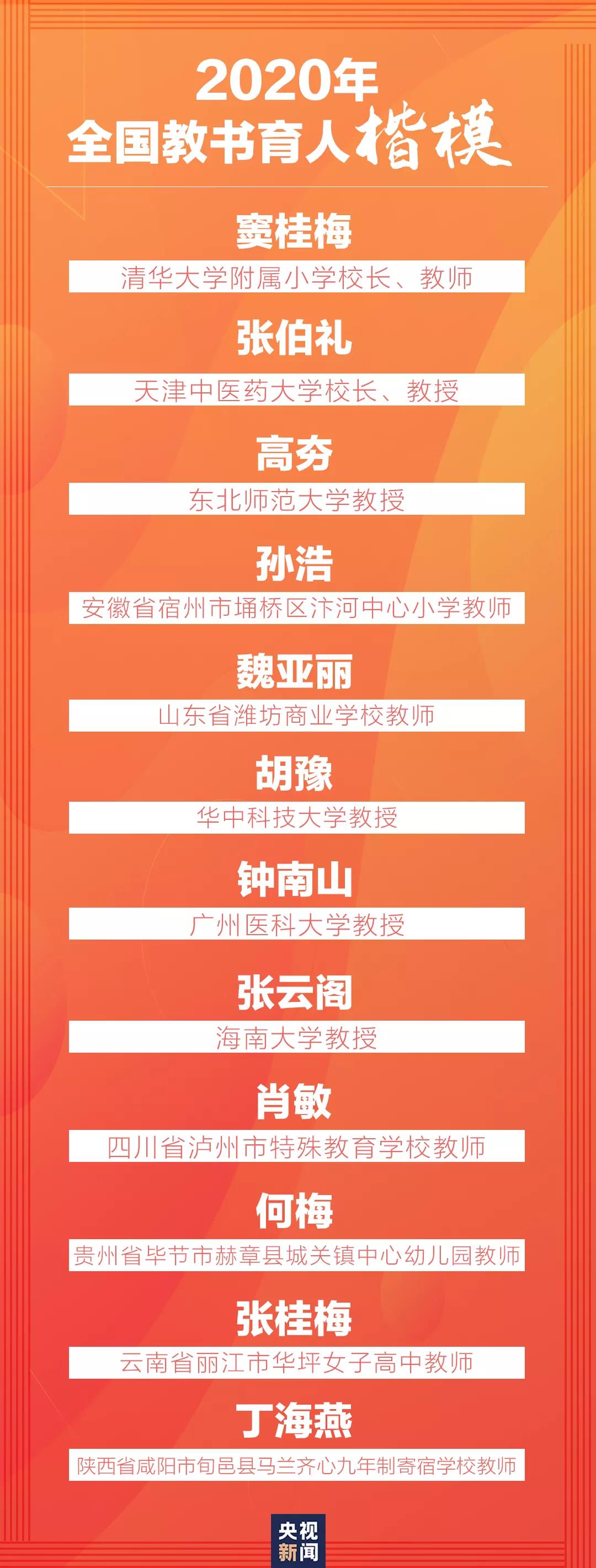 2020年全国教书育人楷模名单公布,钟南山、张伯礼等入选