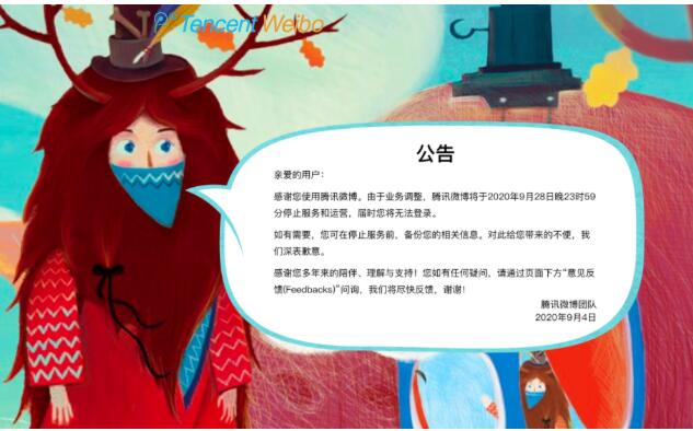 葬爱家族关注!腾讯微博将于9月28日停止运营 将无法登录腾讯微博