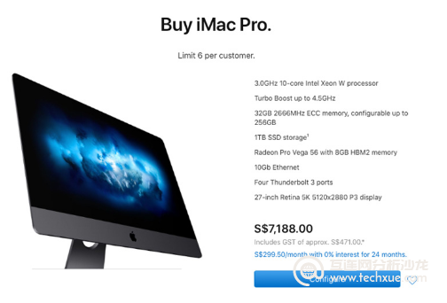 苹果iMac Pro配置现在配备了3.0GHz 10核Intel Xeon W处理器