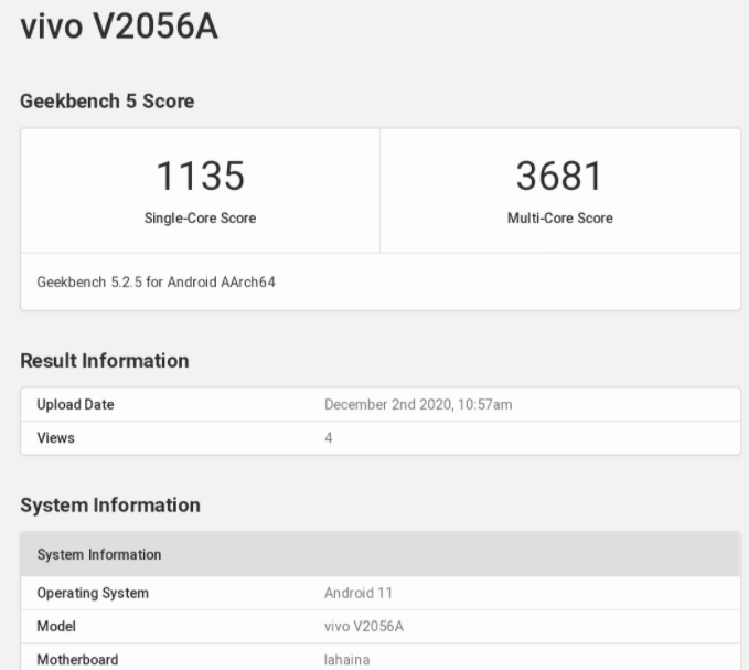 Vivo将以其硬件功能引起人们注意的手机出现。带有代码Vivo V2056A的智能手机;它将具有Snapdragon 888和12 GB RAM容量。它还将配备Android11。这款出色的智能手机的Geekbench 5得分已经出现。配备Snapdragon 888处理器的设备的Geekbench 5得分;单核为1.135,多核为3.681。当我们将这些结果与上一代旗舰处理器Snapdragon 865进行比较时,可以说在纸上有了明显的改进。Snapdragon 865已通过Vivo X50 Pro +
