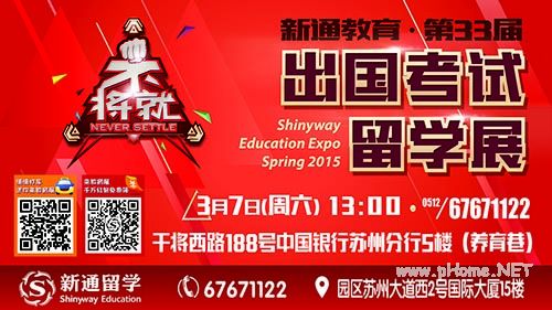不想永远在二流的选项中将就,就必须用一流的速度和勇气去好好规划未来。2015年早春首场国际教育盛会——“不将就-新通教育第33届出国考试留学展苏州站”,3月7日盛大启动,只为有梦想的人,带来更精彩的机会;只为所爱的人,创造更有爱的未来。