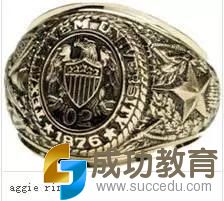 德克萨斯A&M大学生成功毕业时可以有资格购买AggieRing,(下图),你戴这个戒指,说明你就是这个学校的人,很炫吧~~~