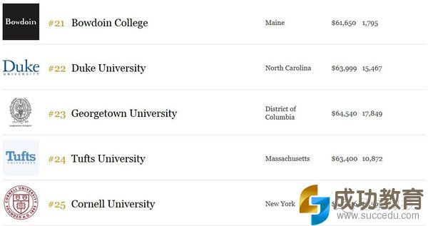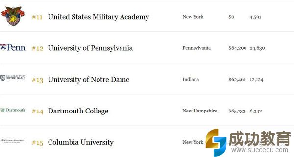 2015福布斯美国顶尖大学最新排行榜!