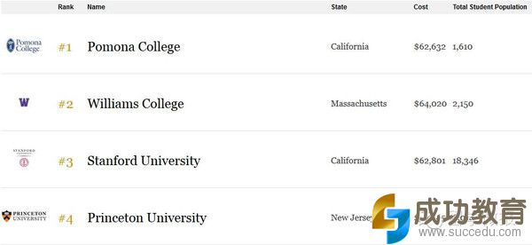 7月29号,福布斯官网发布了2015年美国顶尖大学排行榜,福布斯美国顶尖大学排行榜关注核心是学生的满意度、毕业率、就业情况和学生助学贷款的高低。今年位居榜首的是文理学院:波莫纳学院,由去年的第8名一跃成为第1。而去年的第一威廉姆斯学院今年退居第二,斯坦福由去年的第二名变到第三,哈佛前进了一个名词。说到排名,各家有各家的衡量标准,去美国留学正在选择学校的同学大可作为参考,下面看看具体榜单。
