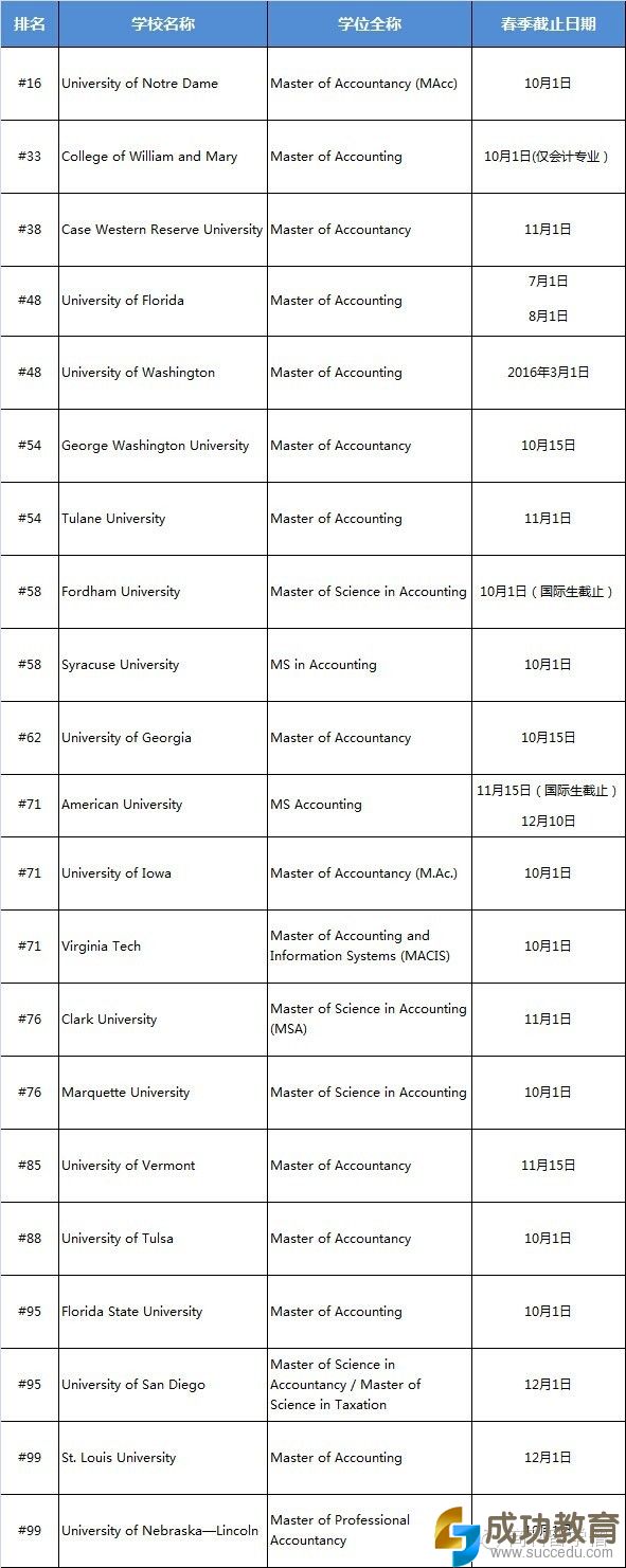 伴随着2015申请季的结束,2016申请季已在不动声色中拉开帷幕,大部分院校春季硕士申请已开放。对于没有赶上2015秋季入学,又想缩短gap year的同学们来说,选择春季入学是一个很合理的选择。相对于秋季入学,接收春季入学的学校比较少,每年的申请者也比较少,因此申请的竞争不如秋季激烈,录取的概率比较大。想要成功申请,把握时间是关键的,下面百利天下留学特意为大家整理了2016美国各商科专业春季入学的Top100院校及申请截止时间 (如有变更,一切以官网为准),偷偷收藏吧。