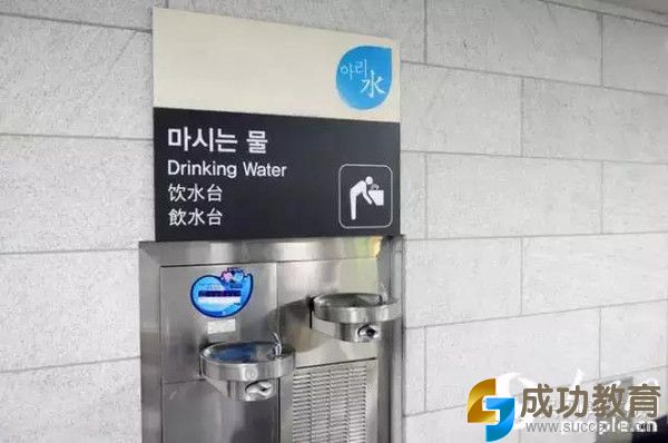 韩国机场和一些景区内饮水机随处可见,不同高度的设置兼顾到了成年人和小孩。