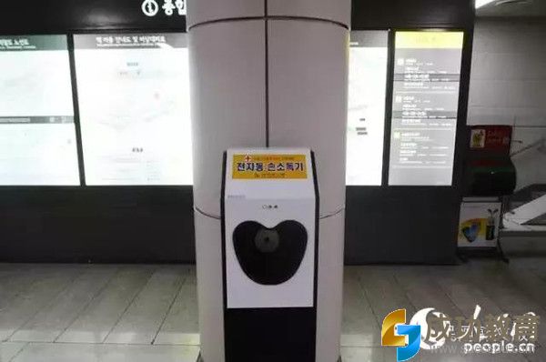 因为MERS疫情,韩国地铁和公共场所里都装备上了自动消毒机。疫情最严重的时候,地铁站的值班室还免费发放一次性口罩。