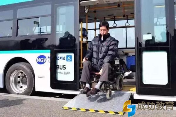 韩国的公交车上不仅有轮椅专用空间。上下车时,司机还会贴心地降下斜坡板。地铁站的楼梯也有提供轮椅的升降装置,让残障人士能够真正地无障碍出行。