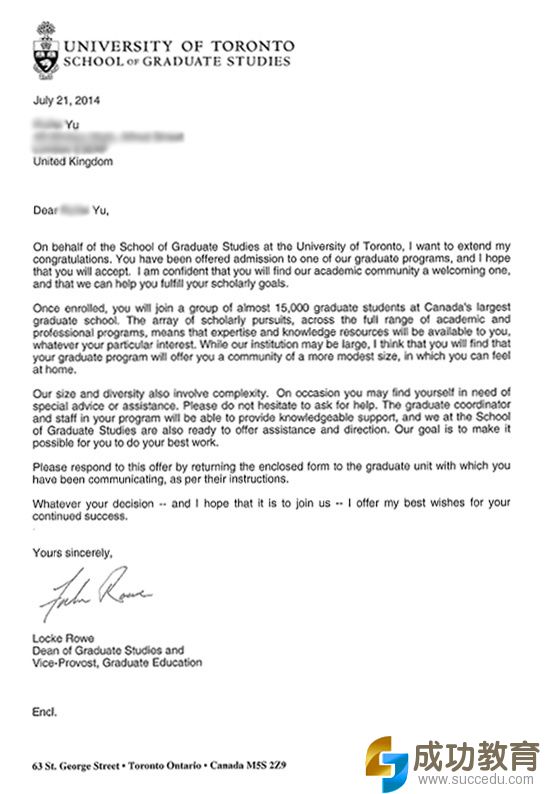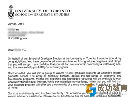 其实,当时学生有自己写好的简历和个人陈述,而且由于学生本科是在UCL 就读的,英文自然比较好,但是距离我们的专业水准还是有一定的差距的。光是学生的简历就有好几个版本,中英文的版本都有。由于内容非常多,文书李振环老师细心地整理出了学生的所有素材并进行了分类。由于学生的研究项目和课外活动都非常丰富,所以文书老师特意制作出了一个能够囊括内容多的简历版本。在创作个人陈述的过程中,文书老师按照以往的写作经验在学生原有文章的基础上着重突出了学生的学术能力和对申请专业的热情。经过与学生的沟通和四次的反复修改,终于达到了让学生和家长都非常满意的程度。最后在截止日前之前完成了学校的申请。终于我们在7月18号收到了多伦多大学秋季入学的录取通知,这真的是一个奇迹!