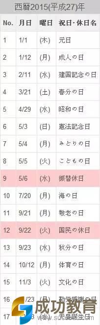 在日本工作有什么长假可以放吗?先列出2015年一般日本的休假,其中包括了三个比较大的长假: