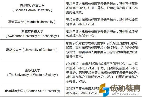 澳大利亚各大学本科申请托福成绩要求出来咯,考虑到澳大利亚本土没有较为权威的排名机构,这次排名参考的是QS给出澳大利亚各大学排名。由于部分学校仅给出了本科申请托福成绩的最低要求,而未给出如医学、护理、新闻学、教育学等可能对语言要求更高的专业的要求,所以信息仅供参考,一些有些问题的信息作出了特殊标记。具体的学校申请要求还是以官网给出的最终决定为准。那么申请2016年澳洲各大学留学的小伙伴可以参考一下~