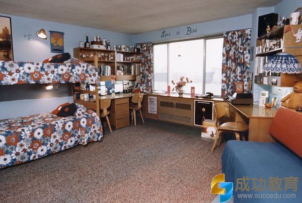 美国学生很珍惜自己展示个性的机会,尤其是宿舍的房间。学生大多有至少一个室友(双人间),有的套间是几个人住,有各自卧室,但是公用厨房客厅浴室等。外加上美国学生开放的性格,朋友间(甚至男女朋友间)经常串宿舍拜访hang out,所以房间的摆设和床铺的设计都会彰显自己的性格,弄不好也会被调侃。