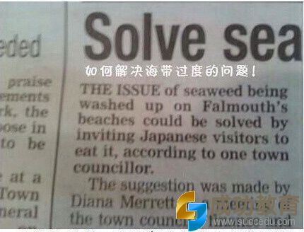 为解决有太多海带被冲到海滩上的问题,一个英国镇长建议引入一大批日本游客,因为他们会吃光所有海带。