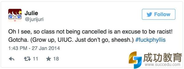 这些身为学校高层的无奈,却敌不过作为一个亚裔所遭受的歧视。2014年1月,在美国中部大暴风雪的情况下,Wise做出UIUC继续上课的决定引来一些学生在推特上的恶骂。很大一部分辱骂言论将攻击重心集中在了Phyllis Wise的女性身份和亚裔身份,他们使用了共同的标签,“#fuckphyllis”。