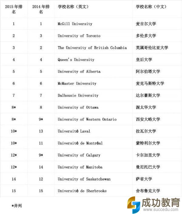 注:加拿大政府等官方机构对加拿大的大学或学院并不做官方排名,至今最权威最常用的参考数据来源于加拿大知名杂志——《麦考林》。(参考链接:http://www.macleans.ca/education/unirankings/)