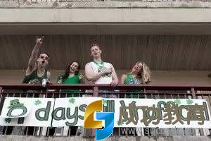 留学生们再来看看美国伊利诺伊大学香槟校区举办的爱尔兰传统节日—圣帕特里克节,这可是美国高校中学生的狂欢节日。
