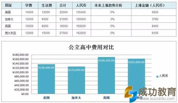 以中国学生经常去的地区和就读的公立中学作为样本,生活费取平均值。