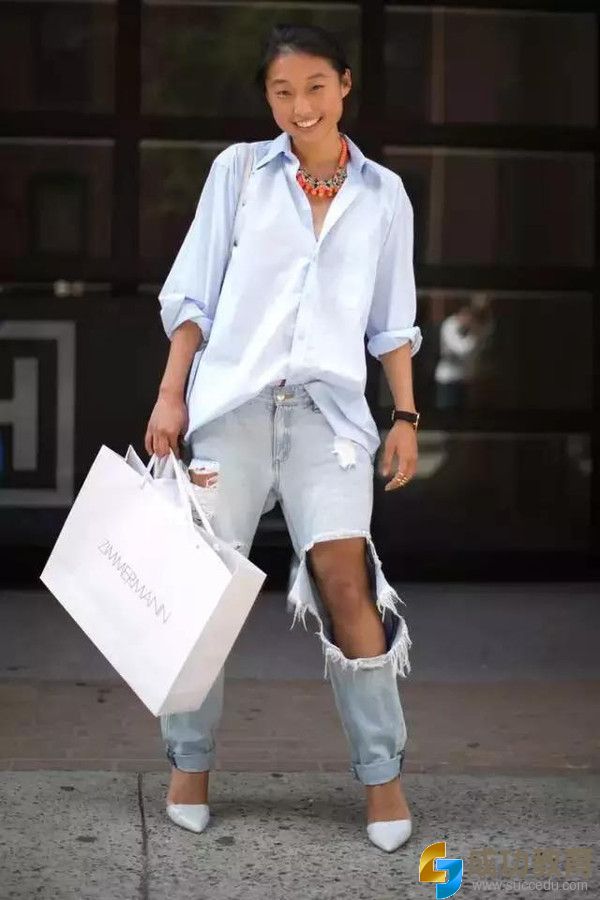不潮不出门的童鞋记得,破洞牛仔裤的洞不要太多太大。