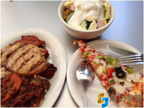再讲讲食堂吧。Crossroad其实还不错,因为吃饭用的是点数(其实就是钱,只不过,专门用来吃饭的钱)早餐6个点,中餐7个点,晚餐8个点。也就是刷完卡,自助餐的节奏。但是可想而知,美国的高热量食品,还是量力而行吧……