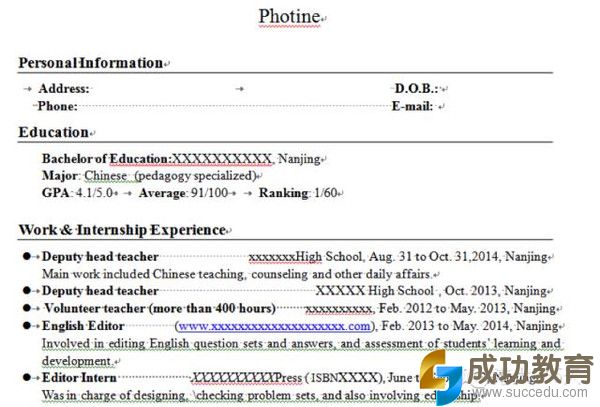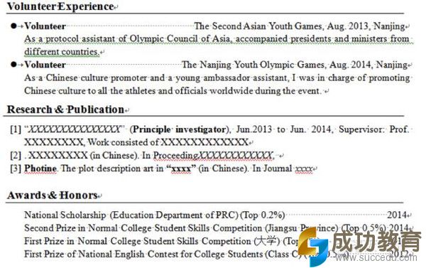 我对照网上大牛的CV准备自己的CV。基本信息,教育经历这些都是死的,无法更改和提升。反倒是奖项、工作、科研等等是可以努力提升的。即使本科一般般也不必太自卑呀,一封有亮点的简历不是仅仅一个光鲜的本科学校才可以的,要努力在大学期间给自己的这封简历添光彩╮(╯▽╰)╭或许是因为大学我没有男票上天体恤我,最后绩点还算可以,拿了一些证书奖状,一些志愿活动啊实习什么的,我的申请不算太捉鸡,就一步一步慢慢来。做简历时就挑重点写一写,感觉不算太难。遇到什么不懂的翻翻港大365的帖子,或者逛逛寄托,我觉得就能搞定了。不当伸手党,DIY更爽。