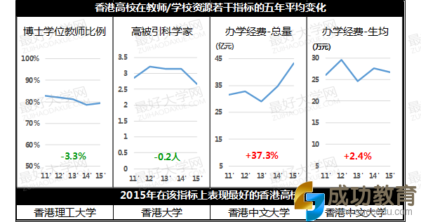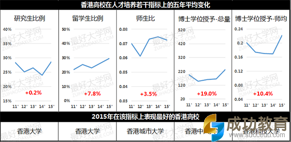 图2、香港高校在人才培养若干指标上的五年平均变化
