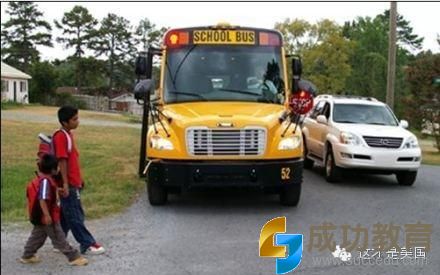 美国的“特权车”——校车,不论什么车(社会车辆),校车停下了,有孩子下车,所有车都停在后面。
