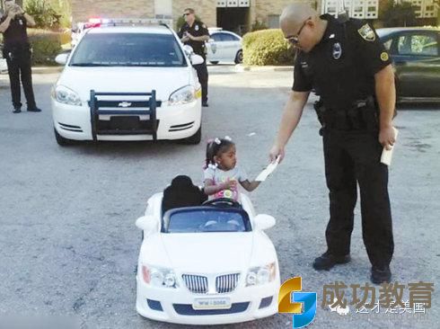 美国2岁女孩开玩具车"超速"被交警开4美元罚单