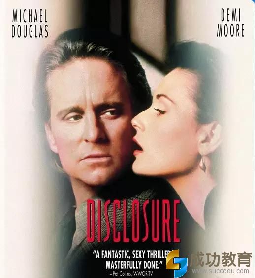 迈克尔·道格拉斯的影片总是让人经久不忘。这个影片的主题是性骚扰,是公司办公室性骚扰。一个高管面对提升的机会,提升的关键人是他大学的女友,女友的动机并不单纯,在办公室发生了一切,一切,第二天却在法庭相见。商业法,办公室行为,公司群体人际关系行为准则,公司高管提拔等都是难得的教材,生动的雷人的教案。万万不能错过的是道格拉斯的滔滔不绝,振振有词以及慷慨激昂。
