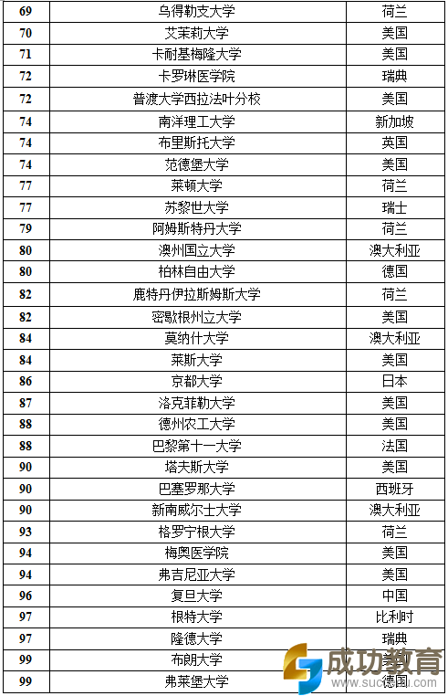 2016年USNews全球大学综合排名(1-100)