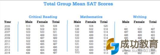 若按性别分类,在批判性阅读部分,男生(499)与女生(495)的表现基本持平;在数学部分,男生(530)的平均成绩表现要优于女生(499);在写作部分,女生(492)的平均分要高于男生(481)。数据显示,写作部分的平均分值从2006到2014都是三个部分中最低的,这与中国广大考生的直接感受不尽相同。中国考生,无论所在年级和水平高低,普遍认为批判性阅读部分要比写作挑战大的多。