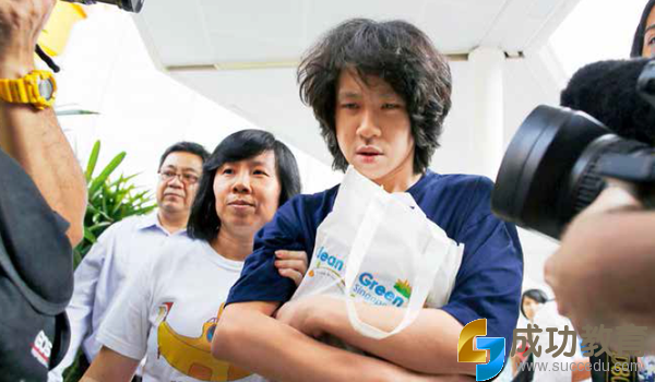 当地时间2015年7月6日,新加坡,余澎杉获释后和父母走出法院。今年5月,由于拍摄影片批评新加坡已故总理李光耀,16岁少年余澎杉"发布淫亵图片"和"蓄意伤害基督教徒感受",两项罪名成立,被法院判处4周监禁。