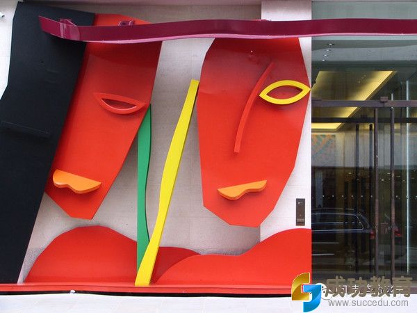 走出地铁,明晃晃的阳光一下子将你带进这个色彩鲜明的世界。造型各异的小店决不吝惜用最亮丽的颜色。蓝色的墙,黄色的门,红色的雕饰突兀的呈现在你的眼前。夸张有趣的牛仔裤造型挂在墙上,与红色的靴子相映成趣。房顶手拿咖啡安然而坐的人也成了镜头里绝佳的画面,相信那边的风景一定很好。