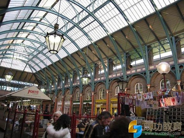 十九世纪时,贝德福特伯爵为市集加盖大厅,到了维多利亚时代,大厅又加了铸铁玻璃拱顶,直到1980年再度整修重新开幕成为零售商场,便成为一个建筑风格独特、新旧并存、融合古典与现代气息的传统市集。