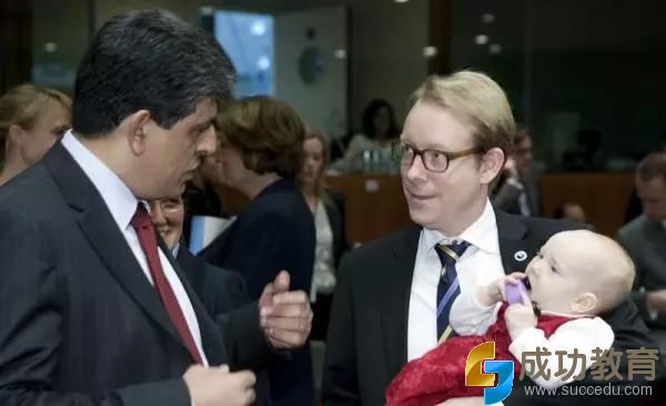 瑞典前首相比尔特,带着孩子上欧盟开会