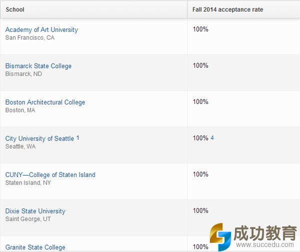 2014年秋季美国录取率100%院校
