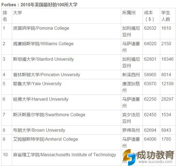 Forbes:2015年美国最好的100所大学