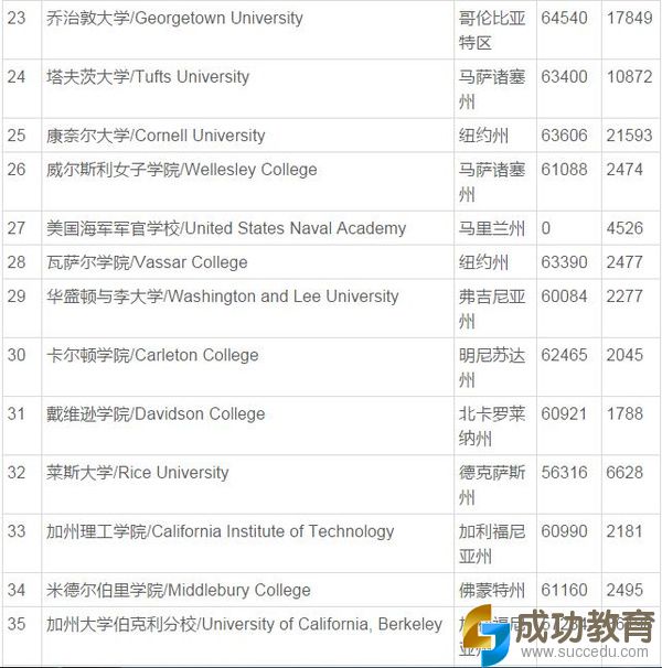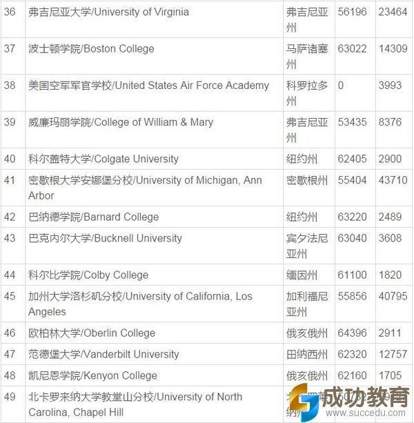排名最高的三所公立大学(非军校类)分别是加州大学伯克利分校(排名第35)、弗吉尼亚大学(University of Virginia,排名第36)和威廉玛丽学院(College of William and Mary,排名第39)。