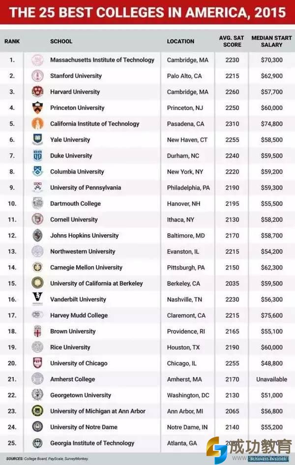 不过从总体上看,几所常春藤院校外加麻省理工学院和斯坦福大学,这些顶尖名校在基本都能处在排名靠前的位置。