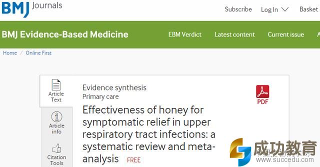 近日,发表在《BMJ Evidence-based Medicine(英国医学杂志循证医学)》上的一项新研究中,来自英国牛津大学的三位研究人员发现,对于上呼吸道感染,蜂蜜可以是一种比传统治疗手段更好的治疗方法。