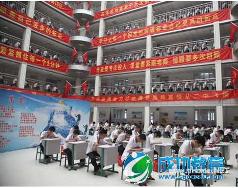 衡水中学注重精细化管理,开展了以“规范成就梦想,规范铸就辉煌,规范创造奇迹,规范赢得未来”为主题的规范月活动。我们在高一教学楼大厅里,看到了高一各学科组的“规范月要求”,教师到学生,在课堂、自习、行为举止、答题等各方面都具有规范化的要求。衡水中学给我们印象最深刻的是精细化管理。上帝给了每个人24小时,但单位时间的利用率因人而异,提高时性的利用率,其意义不言而喻。衡水中学的课间操堪称一流,一下课,学生就飞奔去操场,在跑操等待时间内,人人都在看手中的书本或册子,在自己的位置大声朗诵或阅读。打饭排队时拿着小本子,只为不浪费一分一秒;开会前做数学题;升旗前读着语文、英语素材-----从高一到高三,学生们的吃、住都在校园;高一高二每两周放假一次,每周上课六天,周日全天公共自习;高三每月放假一天,每周上课六天,周日全天公共自习。在衡中学,你看不到学生在课间追逐打闹、走东窜西,也看不到学生在路上边走边吃、随地乱扔垃圾,看不到学生使用手机等现代通讯工具现象。一切都是那样井然有序,整个校园静悄悄的。上午第五节公共自习课,我们转了高一一楼的四个班,看到同学们都在埋头看书做题或剪贴资,没有一个学生说话。我想,衡中学生的成绩就是用点滴时间和无数汗水积累起来的。