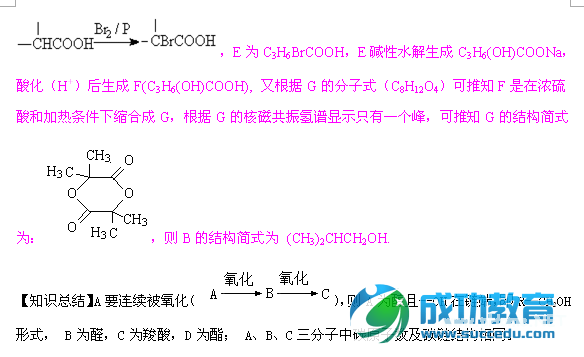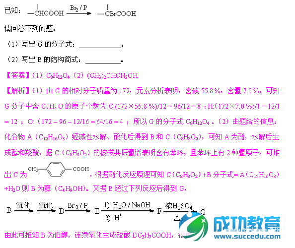 【例4】[2012·浙江理综化学卷]化合物A(C12H16O3)经碱性水解、酸化后得到B和C(C8H8O2)。C的核磁共振氢谱表明含有苯环,且苯环上有2种氢原子。B经过下列反应后得到G,G由碳、氢、氧三种元素组成,相对分子质量为172,元素分析表明,含碳55.8 %,含氢7.0 %,核磁共振氢谱显示只有一个峰。