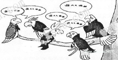 这灵魂或高贵,或卑贱;或独立,或依附。正如上幅图中的鹦鹉们,善于学舍,巧于模仿,结果都是一副腔调,失去自己个性,也就失去自己,而成为批量的“产品”,岂不悲哉!