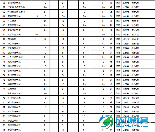 (D+级及以下的学校只列等级,不列排名,等级相同,排名不分先后)