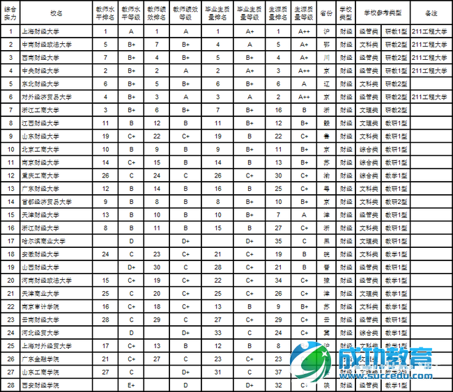 表中各项指标的排名为同一类型大学的排名,各项指标的等级为在全国大学中的等级。
