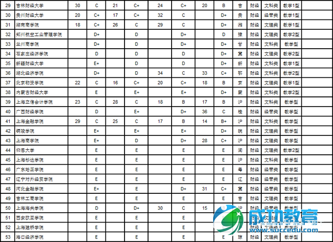 (D+级及以下的学校只列等级,不列排名,等级相同,排名不分先后)